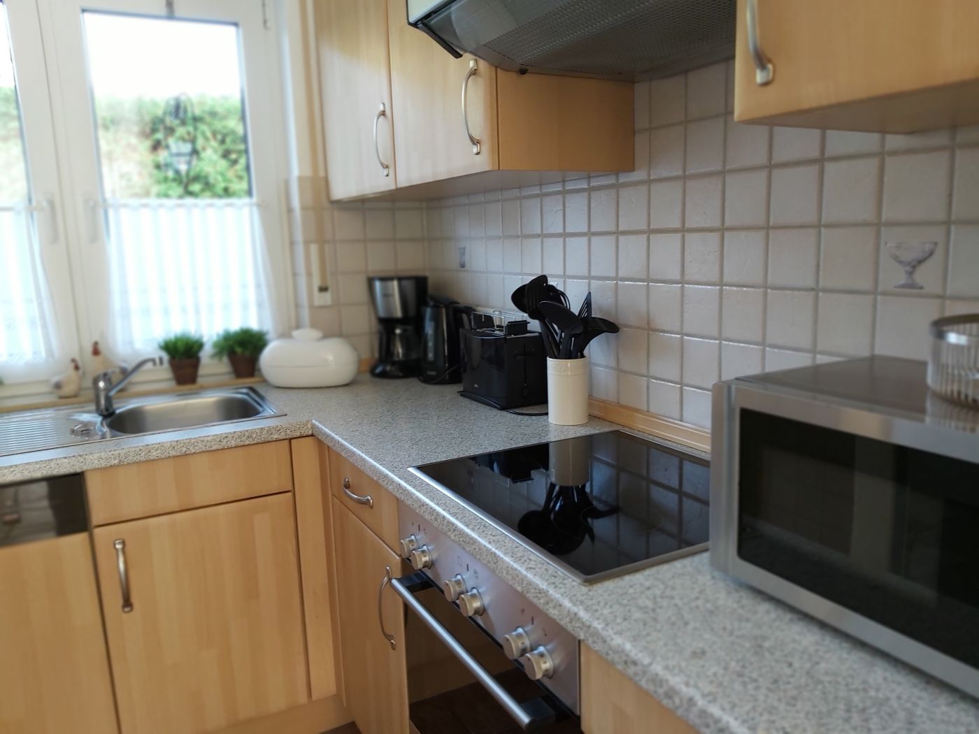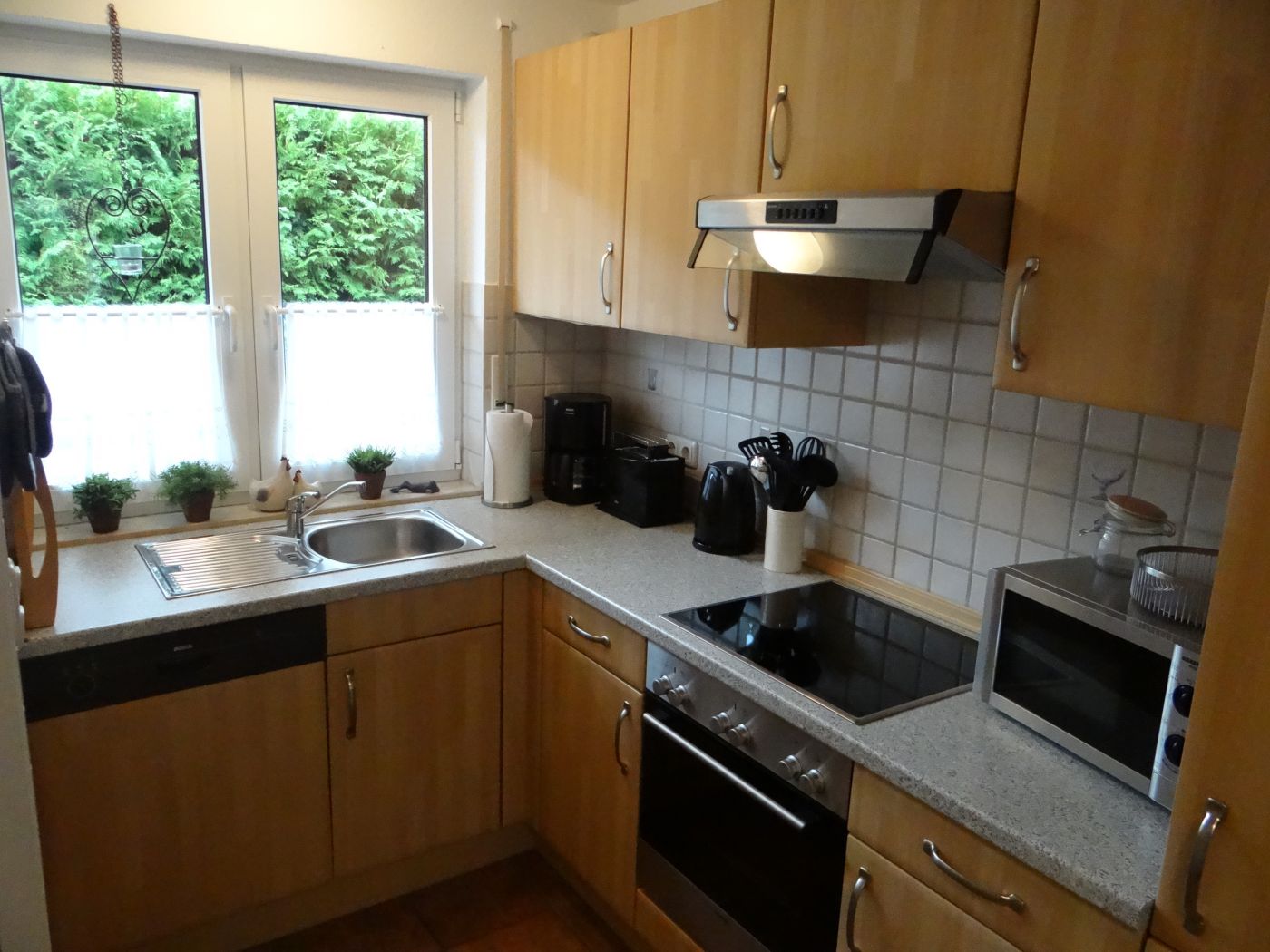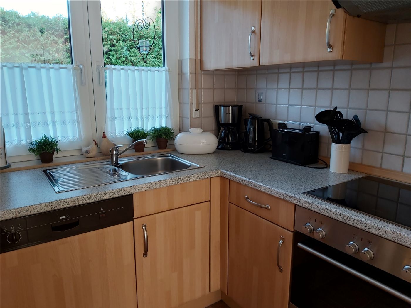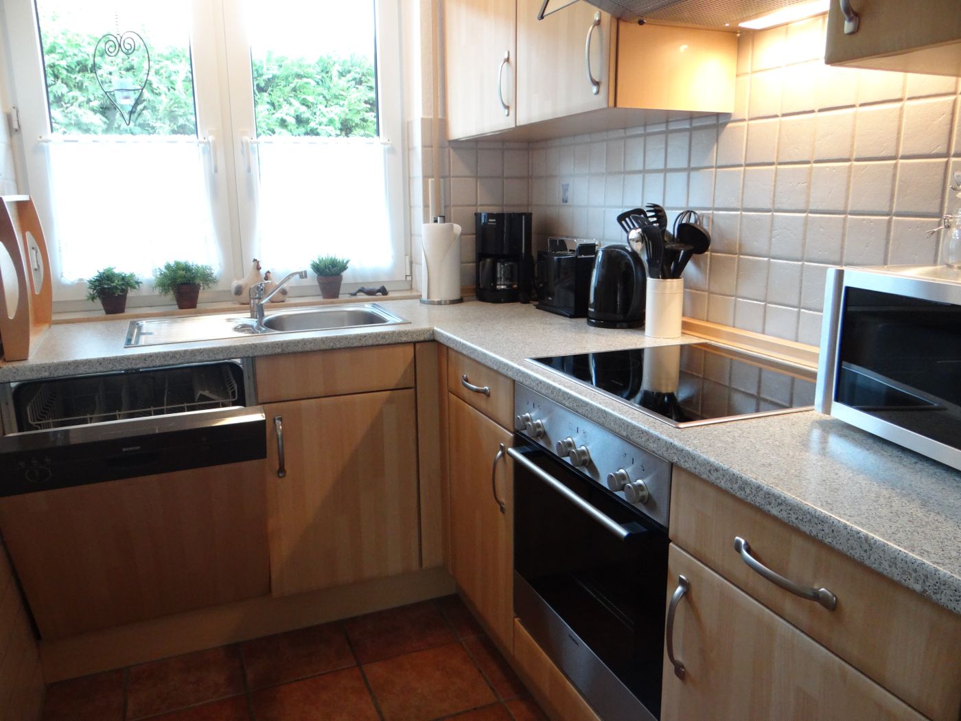 Im Erdgeschoss des Hauses finden Sie die offene, voll ausgestattete Küche mit Spülmaschine, Wasserkocher, Toaster, Kaffeemaschine, Kühlschrank mit Gefrierfach und Mikrowelle.