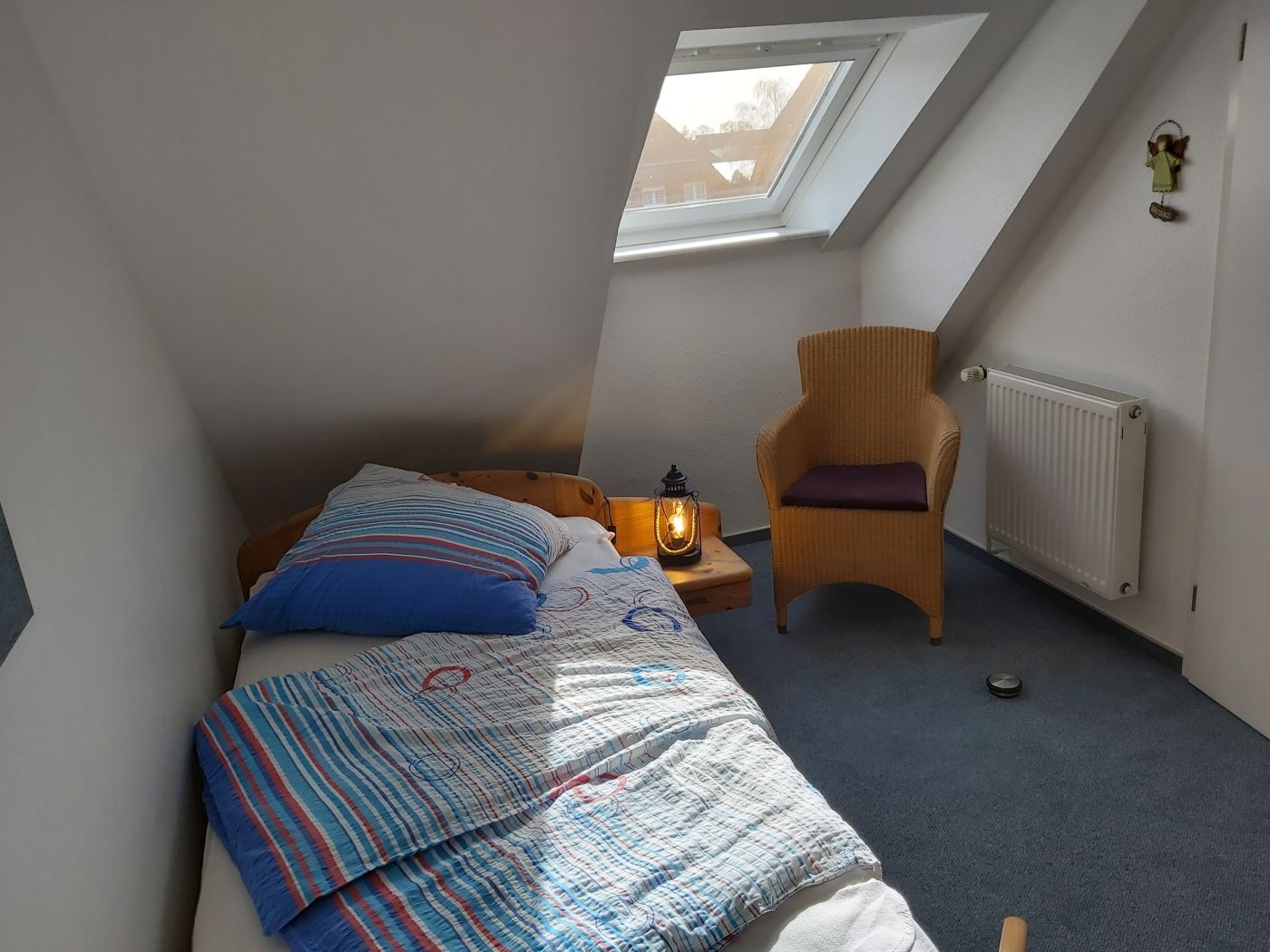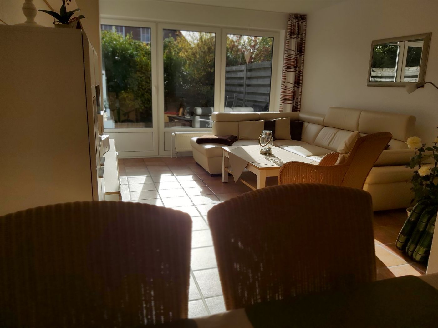 Das Wohnzimmer lädt mit einer großen Couch, einem Flat TV und einer kleinen Bücherauswahl zum Relaxen ein. Die möblierte Terrasse zur Südseite hilft Ihnen die Sonnenseite des Lebens besonders genießen zu können. Das Haus "Ankerliebe" verfügt über drei Schlafzimmer - eines mit einem Doppelbett, eines mit zwei Singlebetten und eines mit einem Singlebett.